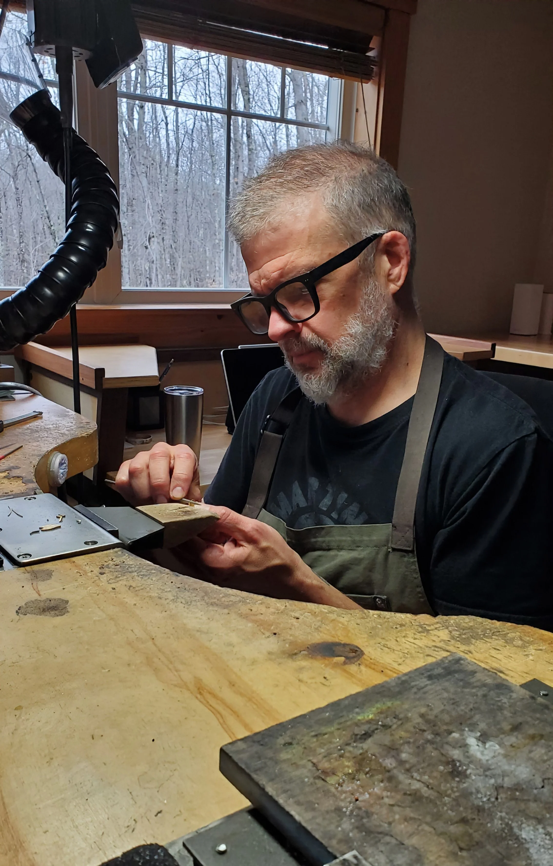 With a BFA in jewelry and metalsmithing from Maine College of Art, Gary dedicates his career to excellence in the craft, focusing on traditional fabrication, metal sculpting, stone setting and wax carving. He also has over twenty five years of service in restoring antique, historical, and museum jewelry pieces.
